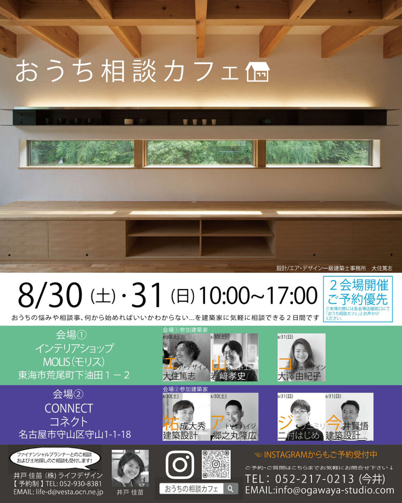 | 8/30 (日) | 10:00~17:00 | コキュデザイン一級建築士事務所 | 大澤由紀子 |